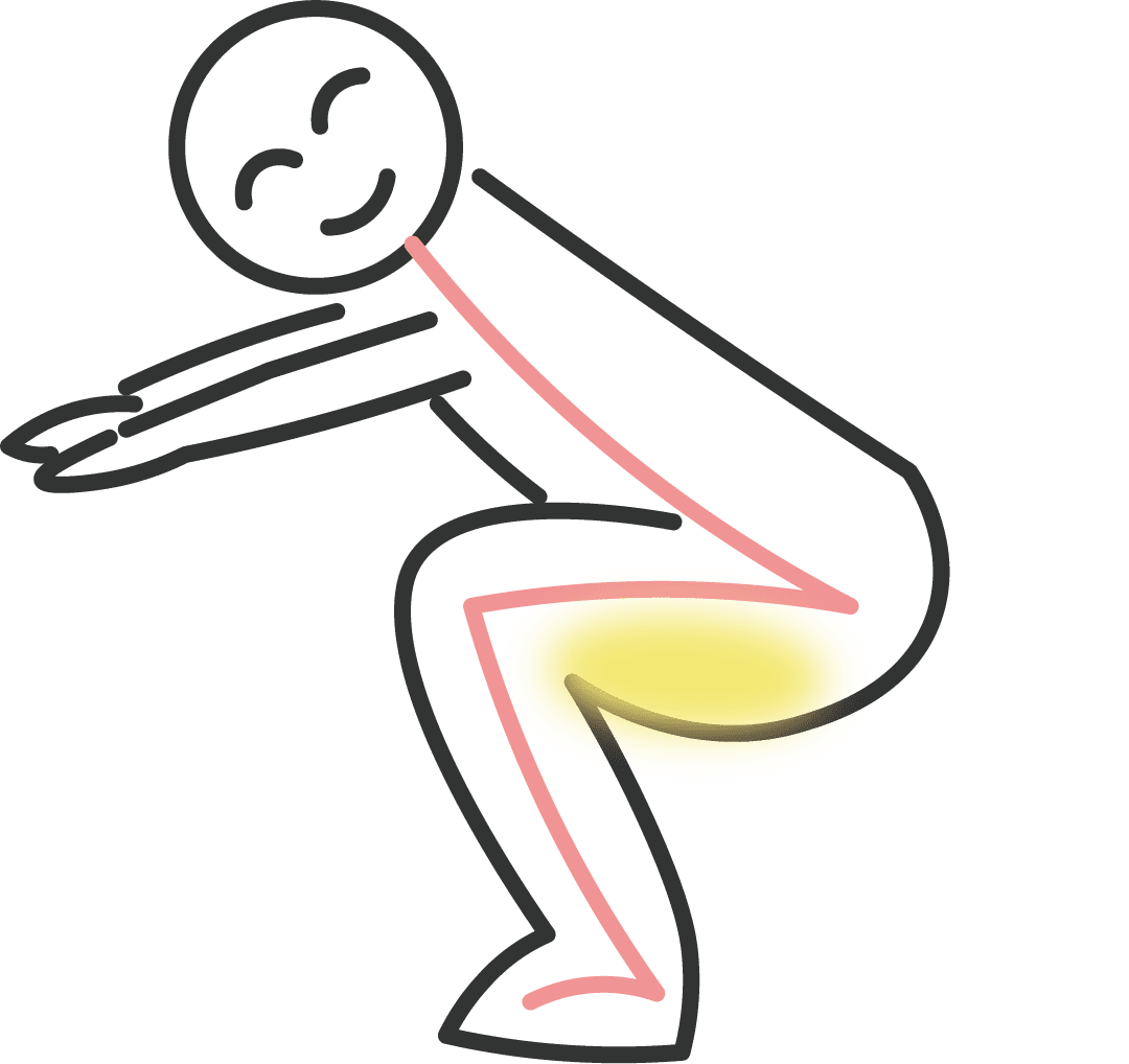 ③背筋を真っ直ぐにしながら膝を曲げてしゃがむ。