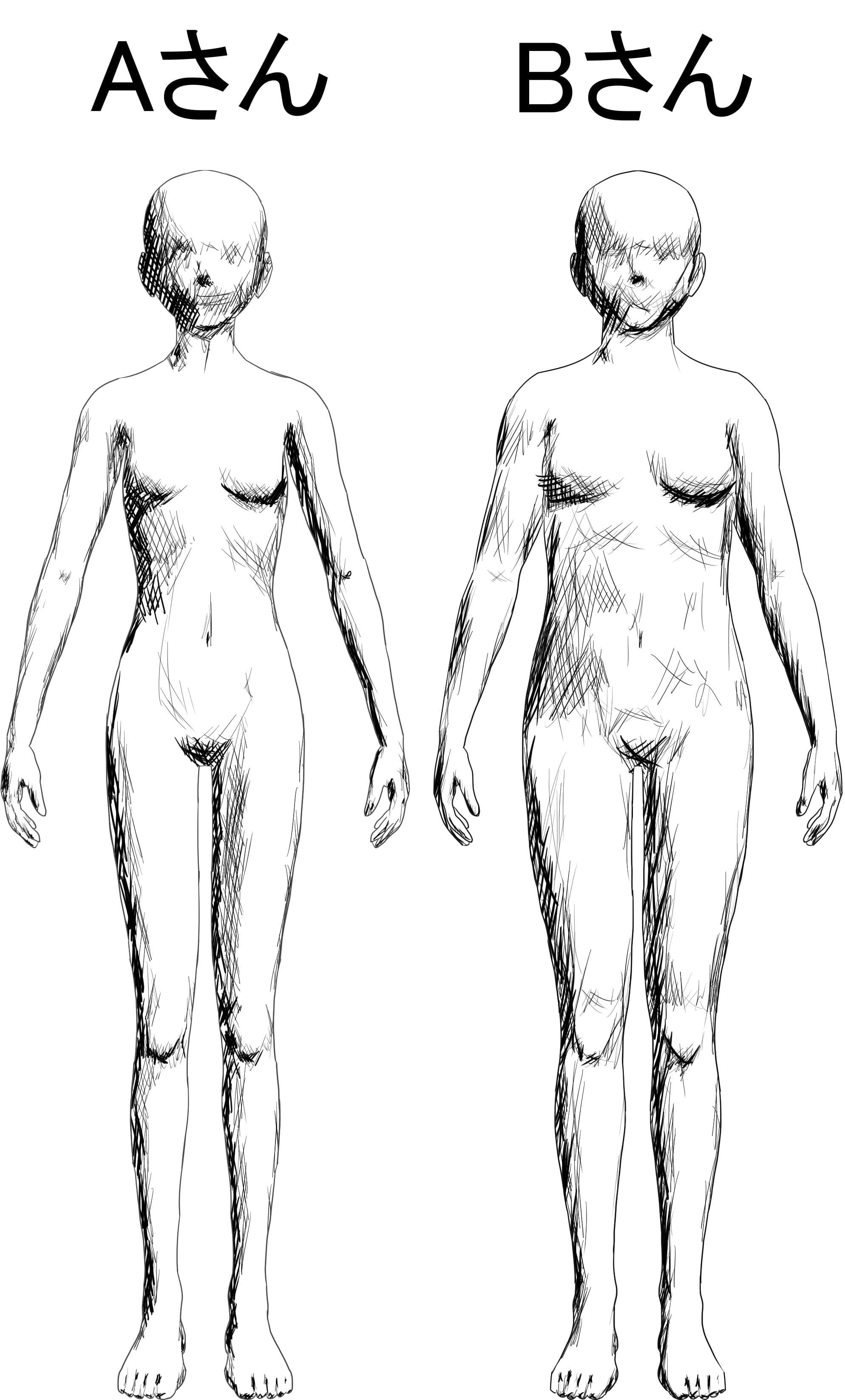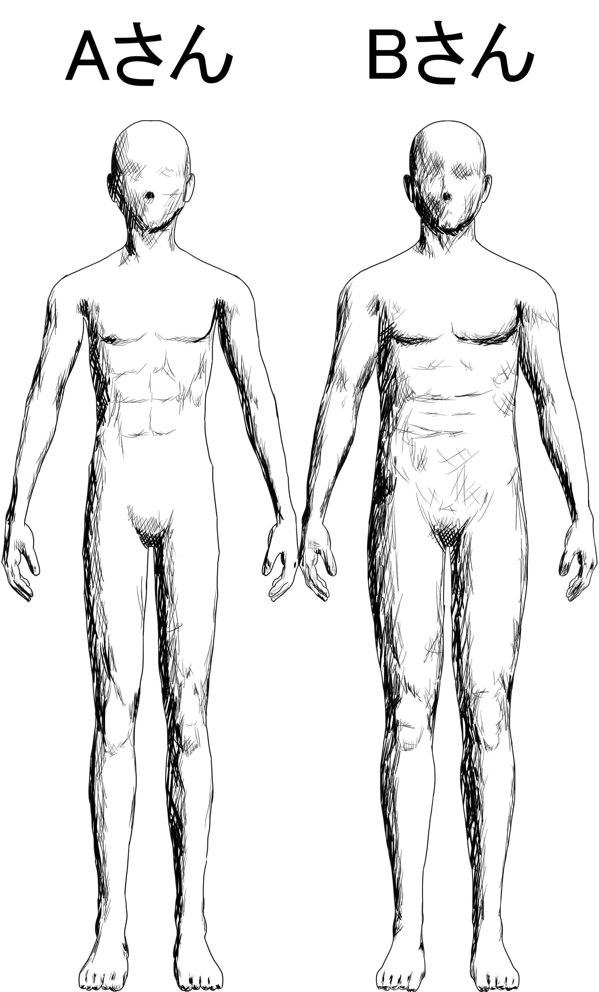 2人はそれぞれ、Aさんは食事制限+筋トレ、Bさんは食事制限のみでダイエットに臨みました。数ヶ月後こうなりました。