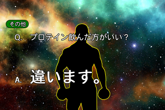ちなみに、プロテインをなんか凄いものだと思って1杯飲むだけで効果があると思っている人もいますが当然それは見当違いです。そんな凄いものではありません。あくまでただのタンパク質ですから、必要な量だけ必要です。ちゃんと計算して飲みましょう。